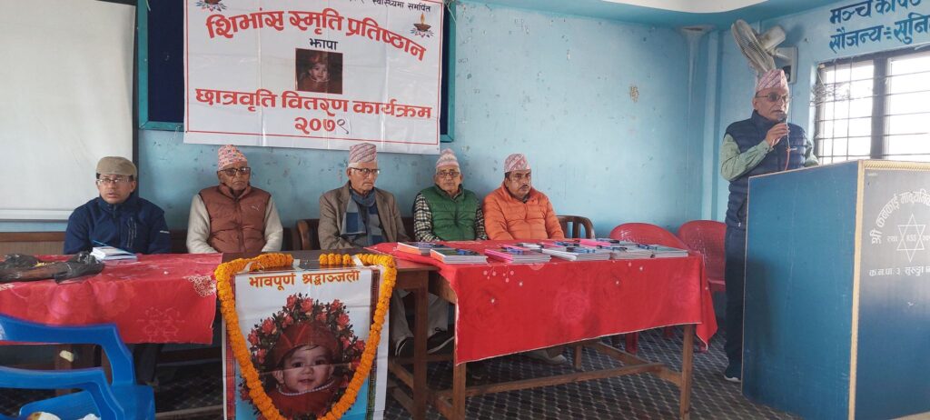 कनकाई मावि सुरुङ्गाको सभाहलमा आयोजित छात्रवृत्ति प्रदान कार्यक्रममा बिमली बन्धु समाजका केन्द्रिय अध्यक्ष युवराज बिमली, कनकाई माविका अध्यक्ष जनार्दन उप्रेती, प्राचार्य कर्ण डाँगी, व्यावसायी ओमकृष्ण बिमली, भगवती आधारभुत विद्यालयका प्रअ खडगप्रसाद बिमली लगायातले दमक बहुमुखी क्याम्पसमा अध्यानरत् तथा कनकाई माविबाटै ३ बर्षपहिले प्रदेश प्रथम हुन सफल विद्यार्थी निशान्त बिमली तथा जिल्ला स्तरीय परिक्षामा कनकाई नगरबाट उत्कृष्ट नतिजा ल्याउन सफल श्रद्धा गौतम र दिवश कोइराला यसैगरि कनकाई माविमा अध्यानरत् विशेष शिक्षा तर्फका विद्यार्थीहरुलाई शैक्षिक सामाग्रीहरु प्रदान गरिएको हो । कलेजका विद्यार्थी निशान्तलाई नगद ३५ हजार र र कक्षा ८ मा अध्यानरत् विद्यार्थीलाई जनही ७ हजार रुपैँया प्रदान गरिएको हो । छात्रवृति वितरण समारोहको संचालन परिवारका सदस्य केशवप्रसाद ओझाले गर्नुभएको थियो भने सभापतित्व नन्दमणि बिमली र स्वागत नेत्र बिमलीले गर्नुभएको थियो ।