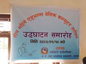 झापाको हल्दीबारी गाउँपालिका वडा नं. ४ मा तीन महिने एडभान्स बेसिक कम्प्यूटर तालिम आज एक औपचारिक कार्यक्रमका बिच उद्घघाटन गरिएको छ। कार्यवाहक वडा अध्यक्ष सुरेन्द्र बाराकोटीको सभापतित्व्मा भएको कार्यक्रममा प्रमुख अतिथि हल्दिवारि गाउँपालिका का अध्यक्ष रबिन्द्र प्रसाद लिङदेन रहेका थिए।वडाका वडा सदस्यहरु भागिरथा दाहाल, शान्ता गहतराज यसैगरी स्वास्थय चैाकि प्रमुख रामप्रसाद ढकाल,प्रहरी चौकी इन्चार्ज दिपेन्द गौतम , महेन्द्र माद्यामिक विद्यालयका प्रअ चक्र बहादुर बस्नेत , दिपेन्द्र आ.विका शिक्षक अर्जुन भट्रराई , हल्दिबारि गाउँपालिका सन्चारर्कर्मी प्रमुख देविका अधिकारी र प्रशिक्षकहरु अमिन मेछे र भिम भट्रराई लगायतको अतिथी रहेको थियो ।