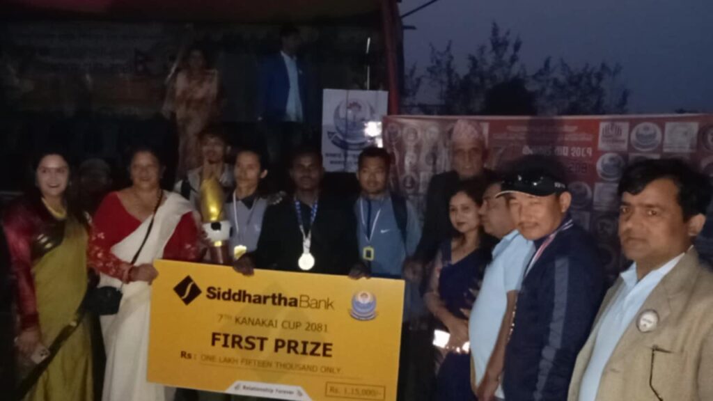 भद्रपुरका खेलाडी रोहन सुब्बा म्यान अफ द सिरिज बन्दै नगद ५ हजार १ सय पुरस्कार प्राप्त गर्नुभयो । प्रतियोगिता कनकाई माविको खेल मैदानमा कनकाई खेलकुद प्रतिष्ठानको आयोजना र कनकाई नगरपालिकाको आर्थिक सहयोगमा सम्पन्न भएको हो ।