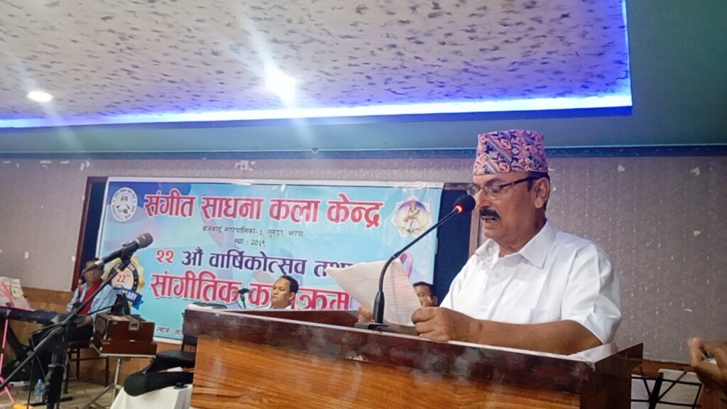 संगित साधना कला केन्द्रका अध्यक्ष तुलसा तिम्सिना पाठकको अध्यक्षतामा भएको कार्यक्रममा कला केन्द्रका सचिव दिलिप खतिवडाले उपस्थित सवैलाई स्वागत गर्नु भएको थियोे भने कार्यक्रमको सञ्चालन कला केन्द्रका सचिव दिलिप खतिवडा र सहसचिव लेखनाथ गुरागाँईले संयुक्त रुपमा गर्नुभएको थियो ।