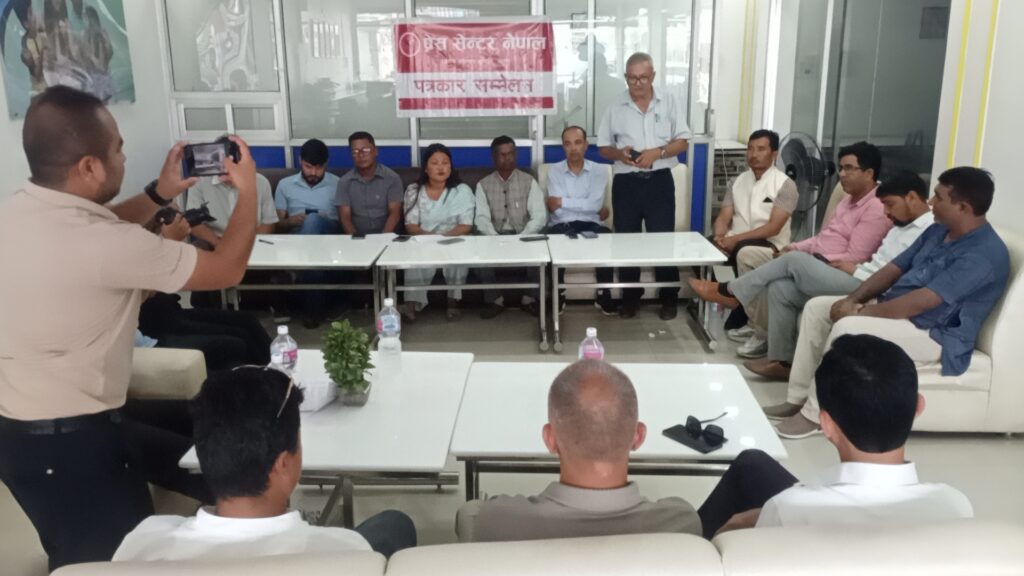 प्रेस सेन्टर नेपालका झापा पुष्प खड्काको अध्यक्षतामा सम्पन्न पत्रकार सम्मेलनको सञ्चालन सचिव प्रकाश उप्रेतीले गरेका थिए ।