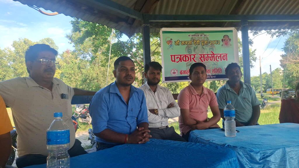पत्रकार सम्मेलनमा निर्मला मण्डल, श्रवण मण्डल, मनोज मण्डल, बंगाली समाज कनकाईका सल्लाहकार पवनकुमार मण्डल लगायातले बंगाली सेवा समाजले यस क्षेत्रमा विभिन्न सामाजिक गतिविधिहरु सञ्चालन गर्दै आइरहेको र समाजले मनसादेविको पुजालाई मुख्य कार्यक्रमको रुपमा हरेक बर्ष सञ्चालन गर्दै आइरहेको जानकारी दिनुभयो ।