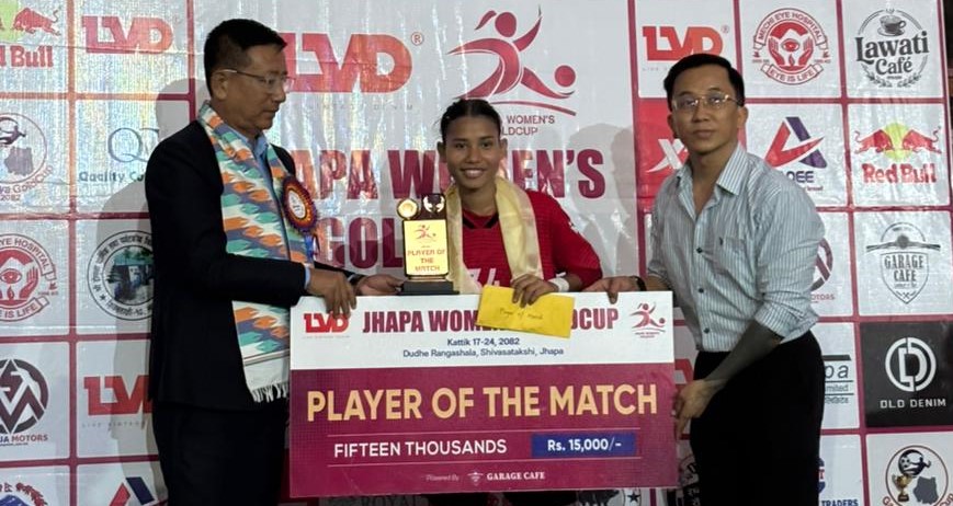 आजको खेलको प्लेयर अफ द म्याच पुलिसकी मिना देउजा हुदै नगद १५ हजार प्राप्त गर्नुभयो । उहाँलाई शिवसताक्षी नगरप्रमुख मेगाहाङ थोप्राले नगद प्रदान गर्नुभयो ।