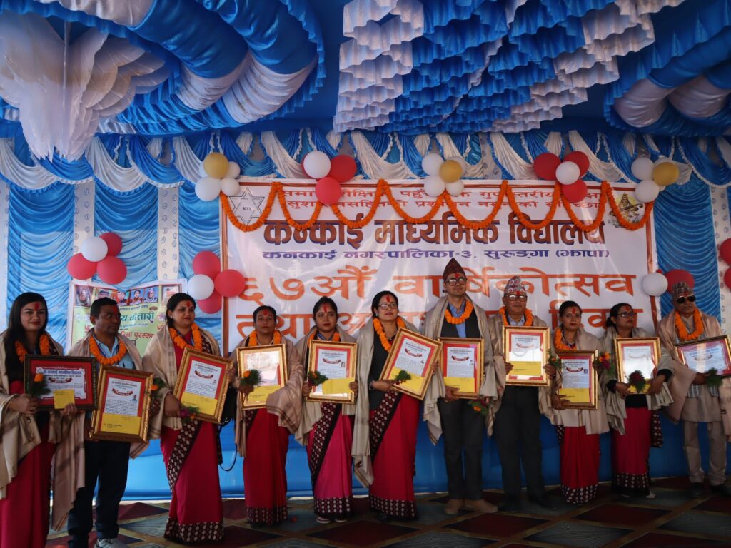झापाको कनकाई नगरपालिकास्थित कनकाई माविले आफ्नो ६७ औ बार्षिकत्सवको अवशरमा पत्रकार सिएम शर्मा सहित विद्यालयका संस्थापक लगायातलाई सम्मानित गरेको छ ।