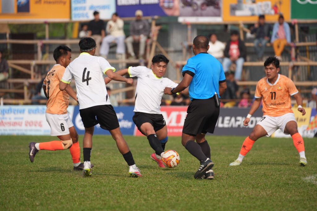 फोटो ः प्रतिस्पर्धा गर्दै पाहुना टोली भुटान सेतो जर्सीमा र एपिएफ पहेलो जर्सीमा