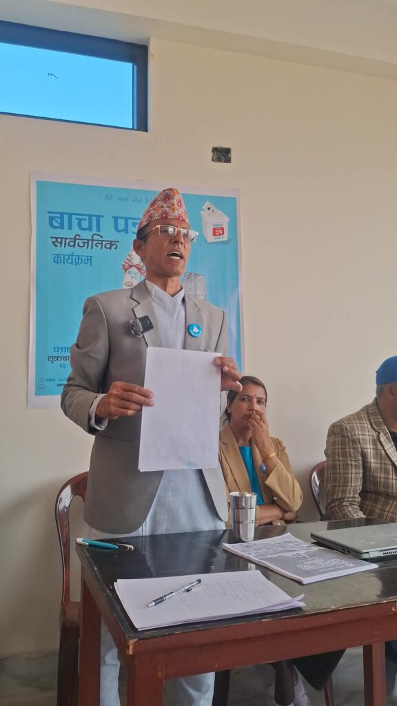 फोटो ः चुनावी बाचापत्र सार्वजनिक गर्नुहुदै रास्वपा झापा ४ उम्मेद्धार सम्भु ढकाल सुस्केरा ।