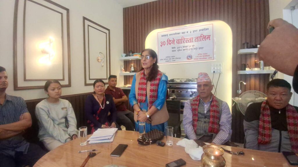 कनकाई नगरपालिका २ नम्बर वार्ड कार्यालयको आर्थिक सहयोगमा सञ्चालित वारिस्ता तामिमको कनकाई नगरपालिकाका प्रमुख राजेन्द्रकुमार पोखरेल, उपाध्यक्ष आशा शर्मा शिवाकोटीेले तालिमको समुदघाटन गर्नुभयो । तालिमको समुदघाटन गर्नुहुदै उहाँहरुले नगरपालिकाले यहाँका युवा लक्षित धेरै कार्यक्रमहरु गर्दै आइरहेको बताउँदै अहिलेको युवा पुस्ताको रोजाई र स्वरोजगारका लागि मद्धत मिल्ने भएकोले यसप्रकारको तालिम नगरपालिकाले गरिरहेको बताउँनुभयो । कार्यक्रममा नगरपालिकाकी उपमेयर आशाशर्मा शिवाकोटीले तालिममा सिकेका ज्ञान शीपलाई खेर जान नदिन र व्यावसायिक रुपमा अब्दल हुन युवा प्ुस्तालाई अनुरोध गर्नुभयो ।