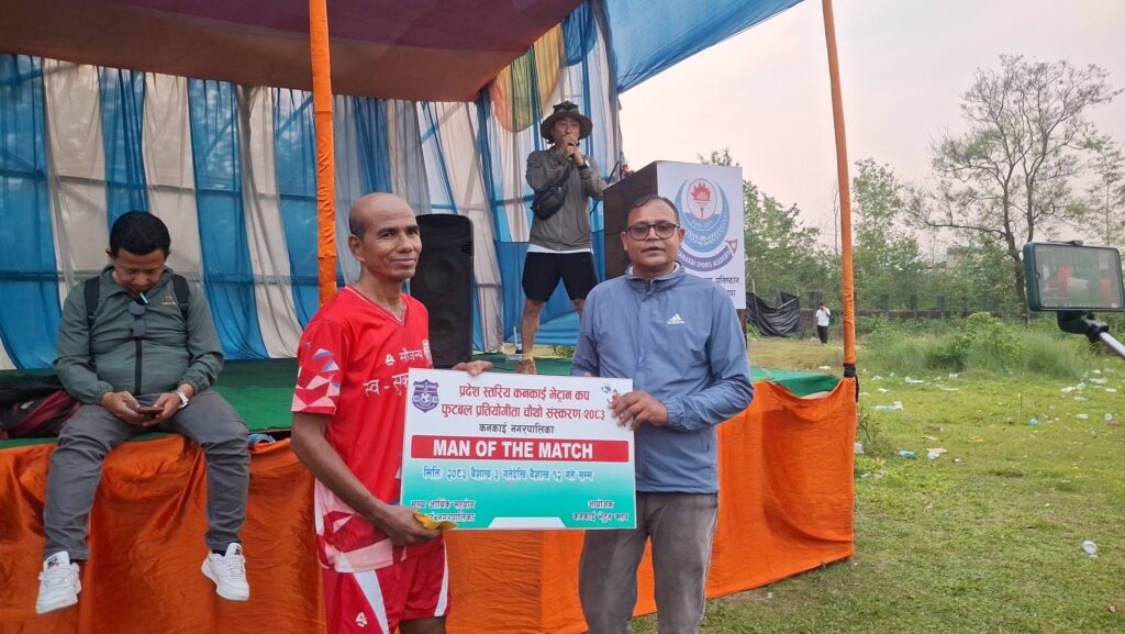 दुधे भेट्रान क्लवका तर्फबाट केशन सेर्मा र लक्ष्मण अधिकारीले गर्नुभयो । खेलको म्यान अफ दी म्याच बिजयी टिम दुधे भेट्रानका कुमार जोशी हुनुभयो । उहाँलाई कनकाई उद्योग वाणिज्य संघका वरिष्ठ उपाध्यक्ष सरोज सिटौलाले नगद पुरस्कार प्रदान गर्नुभयो ।