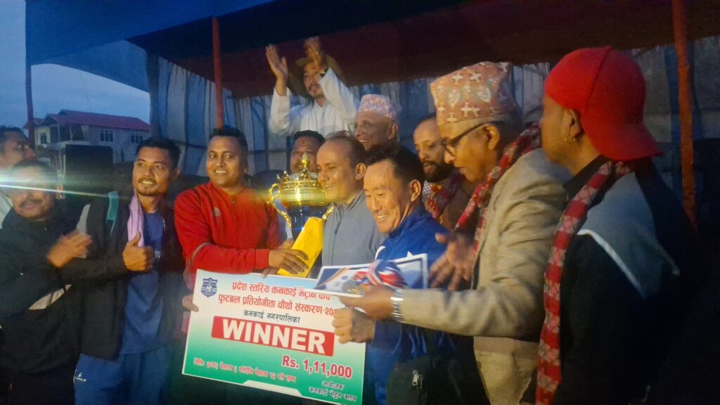 प्रतियोगिताको सर्वोकृष्ट खेलाडी चारपानेका अङकुर खड्की हुनुभयो । यसैगरी म्यान अफ द म्याच कमल खबास, उत्कृष्ट गोल किपर चारपानेकै अमृत गुरुङ, रक्षक सन्तोस बस्नेत हुनुभयो भने हाइस्कोर दुधे भेट्रानका बुद्ध चेम्जोङ हुनुभयो । बिजेता उपबिजेता तथा विधागत बिजेता खेलाडीलाई कनकाई नगरपालिकाका प्रमुख राजेन्द्रकुमार पोखरेल, कनकाई ३ का वडाअध्यक्ष युवराज चम्लगाई लगायातले नगद तथा ट्रफि प्रदान गर्नुभयो ।