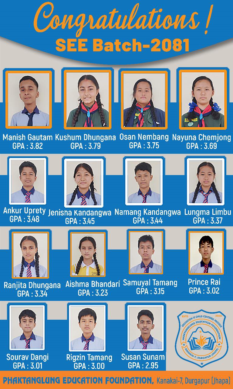 दुर्गापुरको फक्तालुङ एजुकेशन फाउण्डेशन एसईईमा सतप्रतिशत उत्तीर्ण